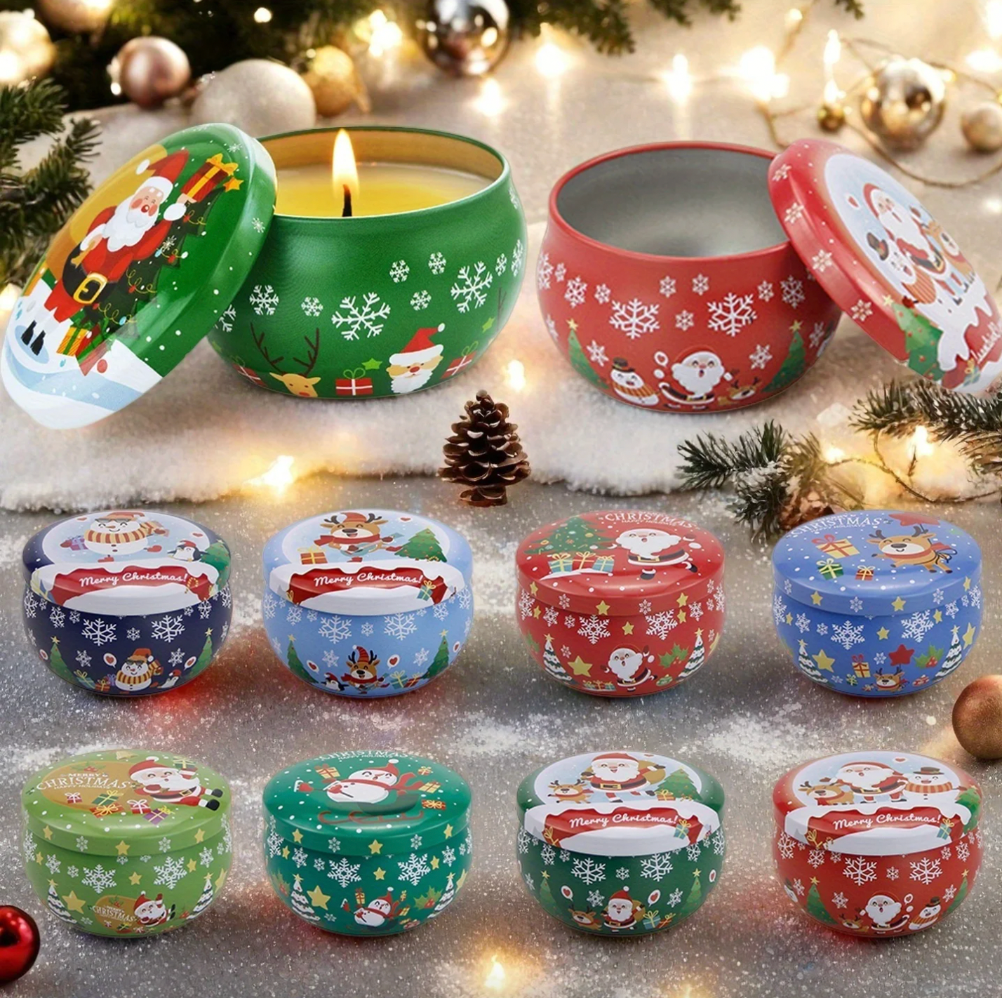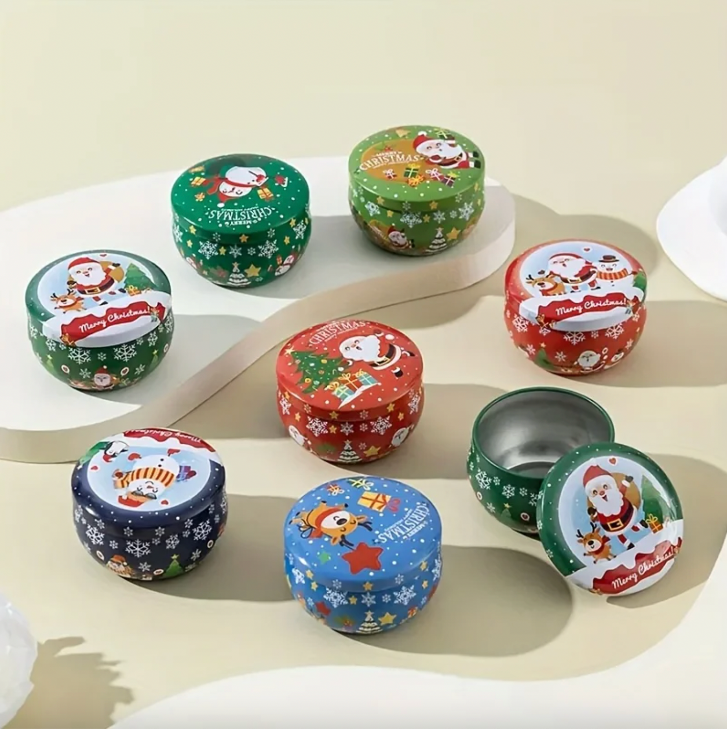 1 Frasco de lata para vela aromática vacío de hojalata de aluminio de 2.5 oz, ideal para tus creaciones artesanales de Navidad, reutilizable para almacenamiento en seco de especias y regalos navideños.