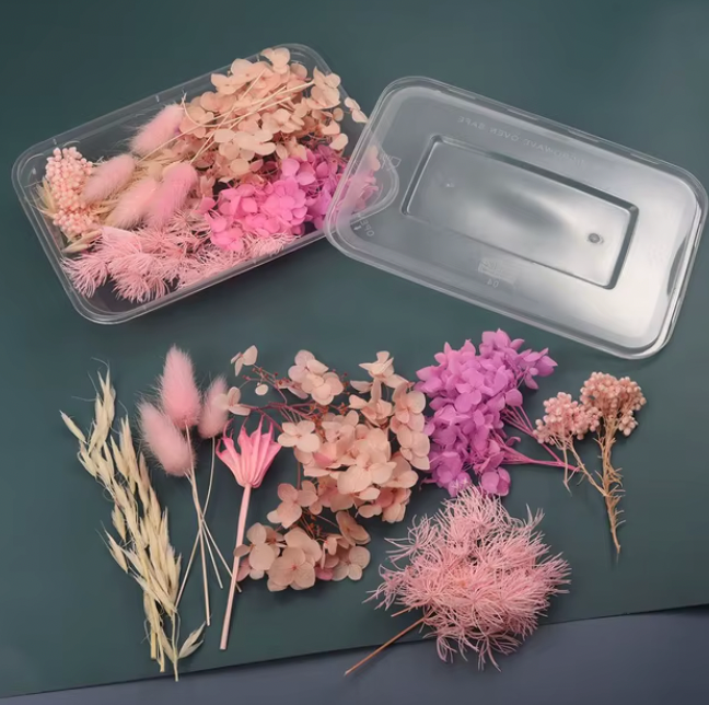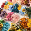 Flores secas naturales coloridas para la fabricación de velas u otras manualidades.