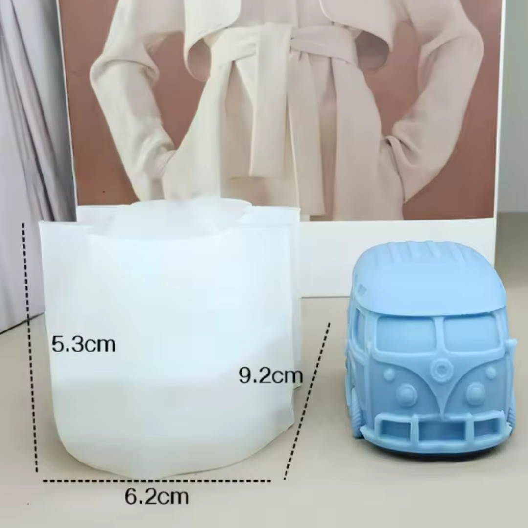 1 Molde de silicón premium para velas y jabones en forma de Camioneta Van, ideal para tus creaciones artesanales de Navidad. Su diseño detallado permite obtener velas con acabados nítidos y realistas, perfectas para recuerditos, regalos, decoración y ventas de temporada.