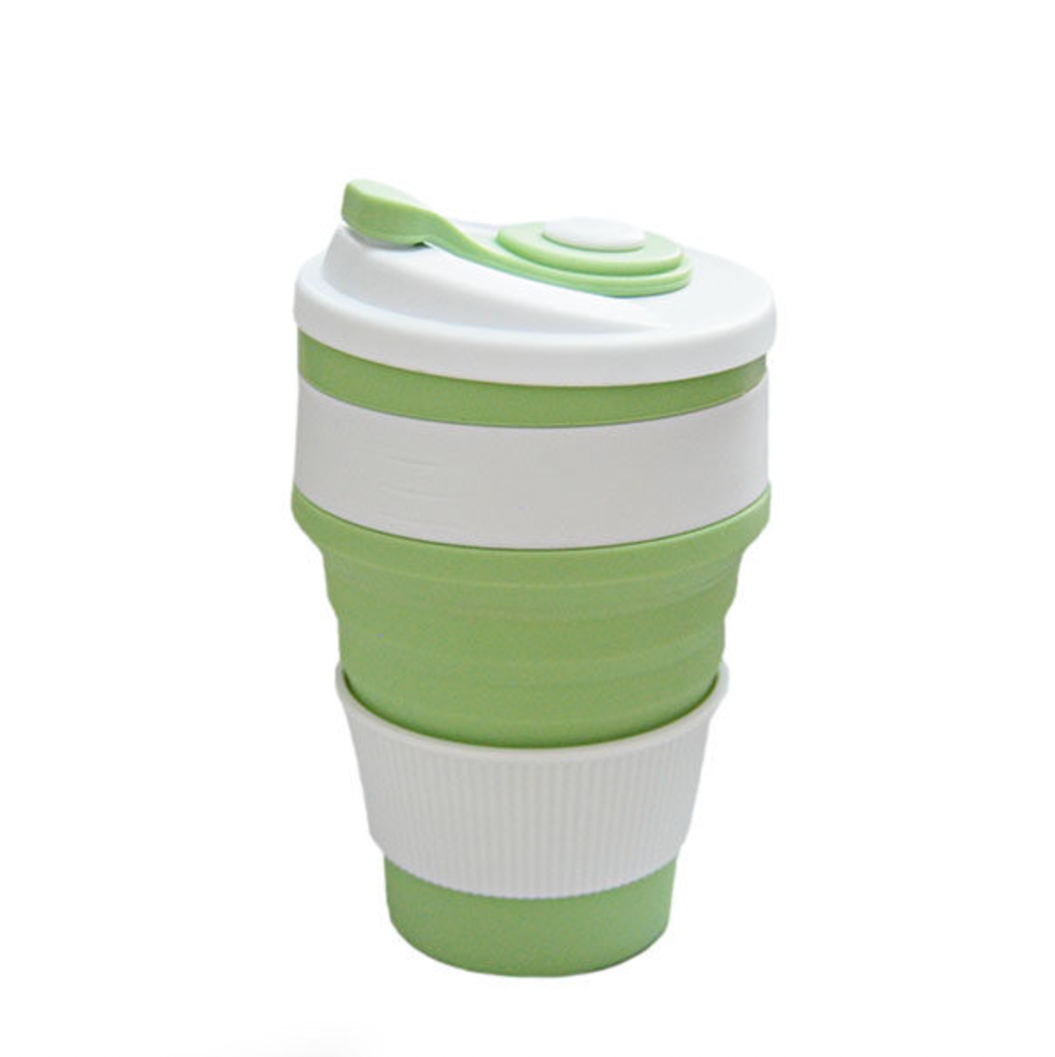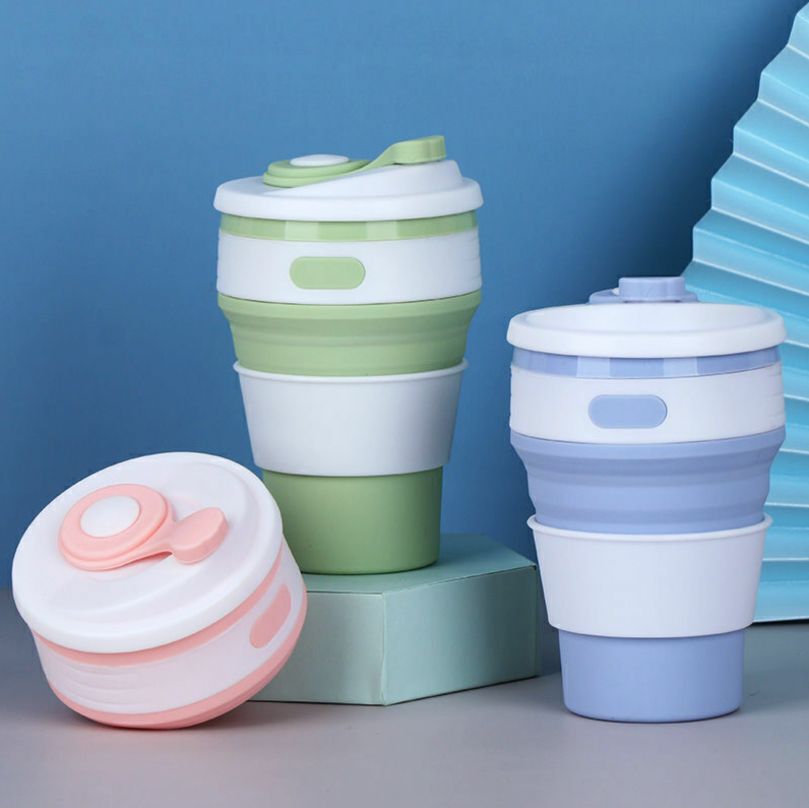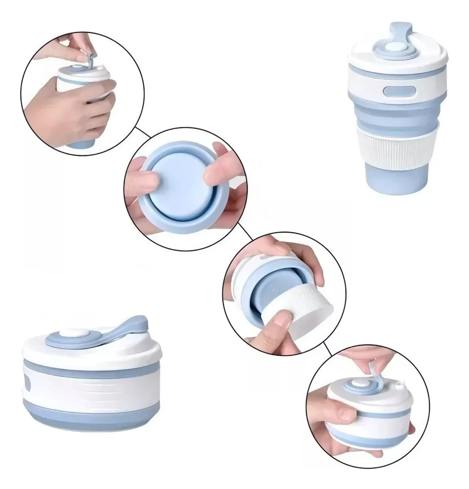 Termo o vaso plegable de silicón ideal para bebidas calientes y al tiempo, como café, tés, jugos, agua etc.